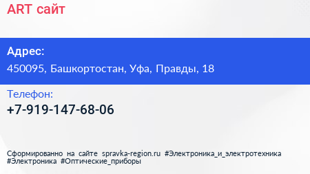 ART-сайт по адресу 450095, Башкортостан, Уфа, Правды, 18 в дальнейшем Организация, размещена в следующих категориях: