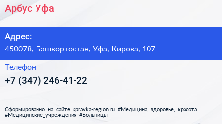 Арбус Уфа по адресу 450078, Башкортостан, Уфа, Кирова, 107 в дальнейшем Организация, размещена в следующих категориях: