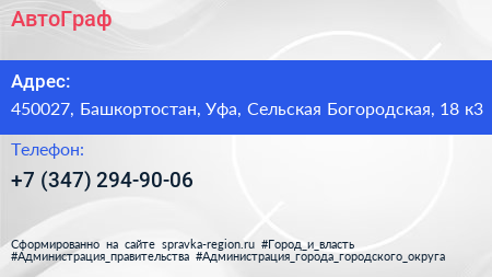 АвтоГраф по адресу 450027, Башкортостан, Уфа, Сельская Богородская, 18 к3 в дальнейшем Организация, размещена в следующих категориях:
