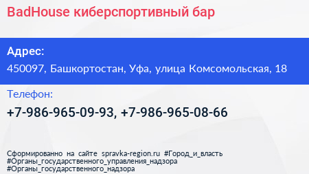 BadHouse, киберспортивный бар по адресу 450097, Башкортостан, Уфа, улица Комсомольская, 18 в дальнейшем Организация, размещена в следующих категориях: