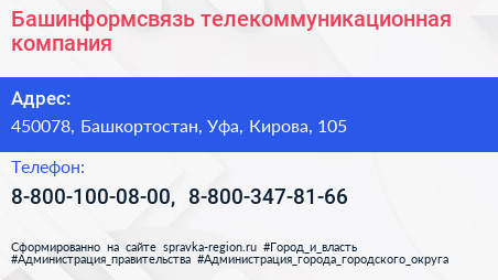 Башинформсвязь, телекоммуникационная компания по адресу 450078, Башкортостан, Уфа, Кирова, 105 в дальнейшем Организация, размещена в следующих категориях: