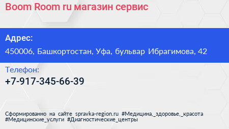 Boom-Room.ru, магазин-сервис по адресу 450006, Башкортостан, Уфа, бульвар Ибрагимова, 42 в дальнейшем Организация, размещена в следующих категориях: