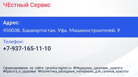 ЧЕстный Сервис по адресу 450038, Башкортостан, Уфа, Машиностроителей, 9 в дальнейшем Организация, размещена в следующих категориях: