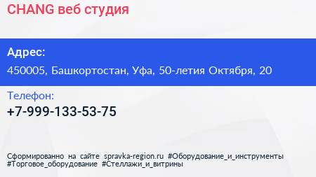 CHANG, веб-студия по адресу 450005, Башкортостан, Уфа, 50-летия Октября, 20 в дальнейшем Организация, размещена в следующих категориях: