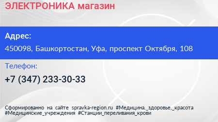 ЭЛЕКТРОНИКА, магазин по адресу 450098, Башкортостан, Уфа, проспект Октября, 108 в дальнейшем Организация, размещена в следующих категориях: