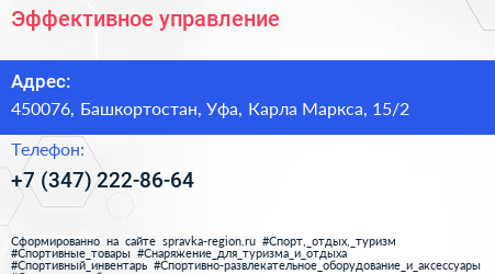 Эффективное управление по адресу 450076, Башкортостан, Уфа, Карла Маркса, 15/2 в дальнейшем Организация, размещена в следующих категориях: