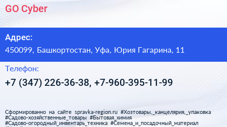 GO Cyber по адресу 450099, Башкортостан, Уфа, Юрия Гагарина, 11 в дальнейшем Организация, размещена в следующих категориях: