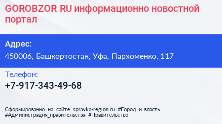 GOROBZOR.RU, информационно-новостной портал по адресу 450006, Башкортостан, Уфа, Пархоменко, 117 в дальнейшем Организация, размещена в следующих категориях: