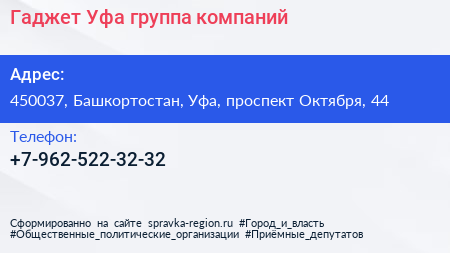 Гаджет Уфа, группа компаний по адресу 450037, Башкортостан, Уфа, проспект Октября, 44 в дальнейшем Организация, размещена в следующих категориях: