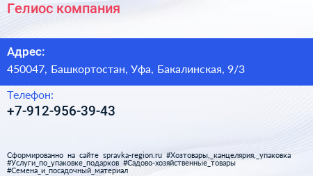 Гелиос, компания по адресу 450047, Башкортостан, Уфа, Бакалинская, 9/3 в дальнейшем Организация, размещена в следующих категориях:
