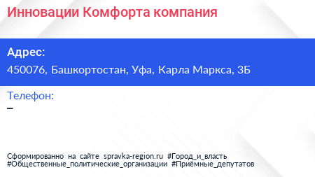 Инновации Комфорта, компания по адресу 450076, Башкортостан, Уфа, Карла Маркса, 3Б в дальнейшем Организация, размещена в следующих категориях: