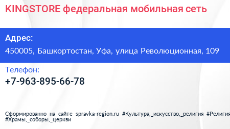 KINGSTORE, федеральная мобильная сеть по адресу 450005, Башкортостан, Уфа, улица Революционная, 109 в дальнейшем Организация, размещена в следующих категориях:
