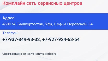 Комплайн, сеть сервисных центров по адресу 450074, Башкортостан, Уфа, Софьи Перовской, 54 в дальнейшем Организация, размещена в следующих категориях: