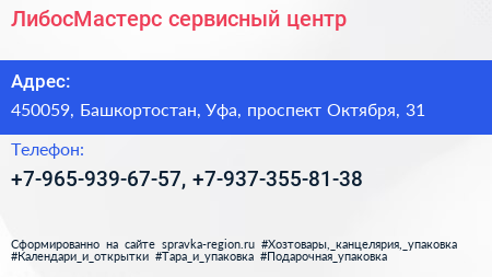 ЛибосМастерс, сервисный центр по адресу 450059, Башкортостан, Уфа, проспект Октября, 31 в дальнейшем Организация, размещена в следующих категориях:
