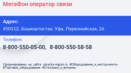 МегаФон, оператор связи по адресу 450112, Башкортостан, Уфа, Первомайская, 26 в дальнейшем Организация, размещена в следующих категориях: