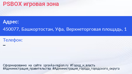 PSBOX, игровая зона по адресу 450077, Башкортостан, Уфа, Верхнеторговая площадь, 1 в дальнейшем Организация, размещена в следующих категориях: