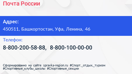 Почта России по адресу 450511, Башкортостан, Уфа, Ленина, 46 в дальнейшем Организация, размещена в следующих категориях: