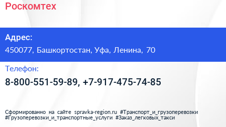 Роскомтех по адресу 450077, Башкортостан, Уфа, Ленина, 70 в дальнейшем Организация, размещена в следующих категориях:
