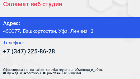 Саламат, веб-студия по адресу 450077, Башкортостан, Уфа, Ленина, 2 в дальнейшем Организация, размещена в следующих категориях: