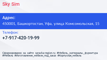 Sky Sim по адресу 450001, Башкортостан, Уфа, улица Комсомольская, 15 в дальнейшем Организация, размещена в следующих категориях: