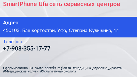 SmartPhone Ufa, сеть сервисных центров по адресу 450103, Башкортостан, Уфа, Степана Кувыкина, 1г в дальнейшем Организация, размещена в следующих категориях: