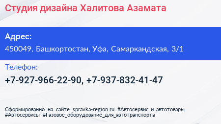 Студия дизайна Халитова Азамата по адресу 450049, Башкортостан, Уфа, Самаркандская, 3/1 в дальнейшем Организация, размещена в следующих категориях: