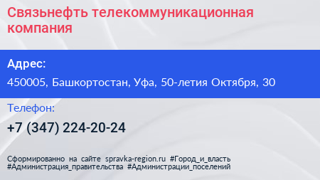 Связьнефть, телекоммуникационная компания по адресу 450005, Башкортостан, Уфа, 50-летия Октября, 30 в дальнейшем Организация, размещена в следующих категориях: