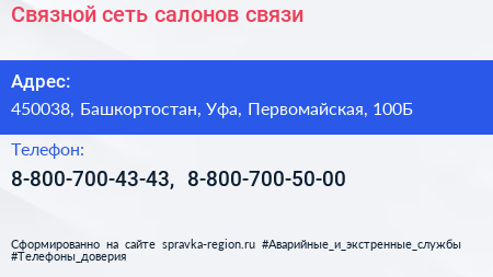 Связной, сеть салонов связи по адресу 450038, Башкортостан, Уфа, Первомайская, 100Б в дальнейшем Организация, размещена в следующих категориях: