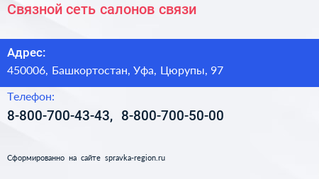 Связной, сеть салонов связи по адресу 450006, Башкортостан, Уфа, Цюрупы, 97 в дальнейшем Организация, размещена в следующих категориях: