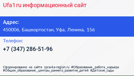 Ufa1.ru, информационный сайт по адресу 450006, Башкортостан, Уфа, Ленина, 156 в дальнейшем Организация, размещена в следующих категориях: