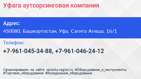 Уфага, аутсорсинговая компания по адресу 450080, Башкортостан, Уфа, Сагита Агиша, 16/1 в дальнейшем Организация, размещена в следующих категориях: