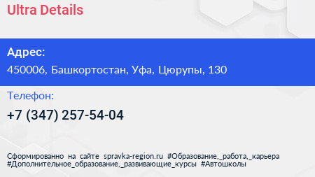 Ultra Details по адресу 450006, Башкортостан, Уфа, Цюрупы, 130 в дальнейшем Организация, размещена в следующих категориях: