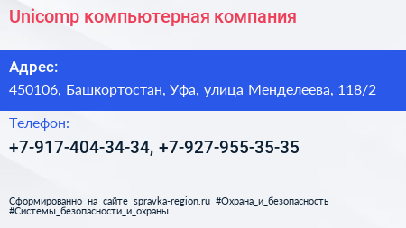 Unicomp, компьютерная компания по адресу 450106, Башкортостан, Уфа, улица Менделеева, 118/2 в дальнейшем Организация, размещена в следующих категориях: