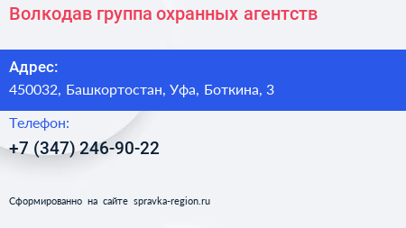 Волкодав, группа охранных агентств по адресу 450032, Башкортостан, Уфа, Боткина, 3 в дальнейшем Организация, размещена в следующих категориях: