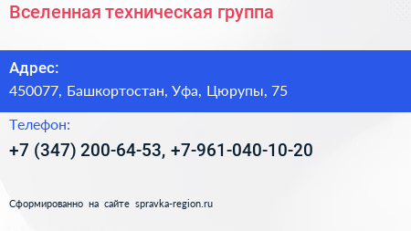Вселенная, техническая группа по адресу 450077, Башкортостан, Уфа, Цюрупы, 75 в дальнейшем Организация, размещена в следующих категориях: