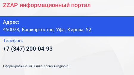 ZZAP, информационный портал по адресу 450078, Башкортостан, Уфа, Кирова, 52 в дальнейшем Организация, размещена в следующих категориях: