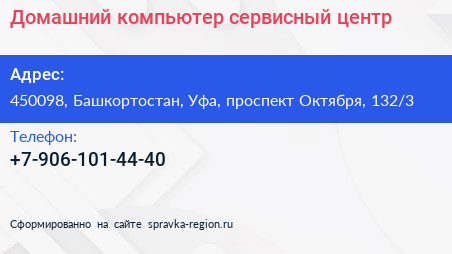 Домашний компьютер, сервисный центр по адресу 450098, Башкортостан, Уфа, проспект Октября, 132/3 в дальнейшем Организация, размещена в следующих категориях:
