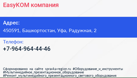 EasyKOM, компания по адресу 450591, Башкортостан, Уфа, Радужная, 2 в дальнейшем Организация, размещена в следующих категориях: