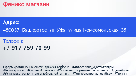 Феникс, магазин по адресу 450037, Башкортостан, Уфа, улица Комсомольская, 35 в дальнейшем Организация, размещена в следующих категориях: