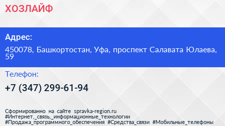 ХОЗЛАЙФ по адресу 450078, Башкортостан, Уфа, проспект Салавата Юлаева, 59 в дальнейшем Организация, размещена в следующих категориях: