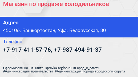 Магазин по продаже холодильников по адресу 450106, Башкортостан, Уфа, Белорусская, 30 в дальнейшем Организация, размещена в следующих категориях: