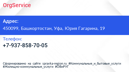 OrgService по адресу 450099, Башкортостан, Уфа, Юрия Гагарина, 19 в дальнейшем Организация, размещена в следующих категориях:
