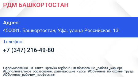 РДМ-БАШКОРТОСТАН по адресу 450081, Башкортостан, Уфа, улица Российская, 13 в дальнейшем Организация, размещена в следующих категориях: