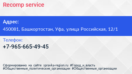 Recomp-service по адресу 450081, Башкортостан, Уфа, улица Российская, 12/1 в дальнейшем Организация, размещена в следующих категориях: