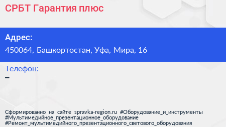 СРБТ Гарантия плюс по адресу 450064, Башкортостан, Уфа, Мира, 16 в дальнейшем Организация, размещена в следующих категориях: