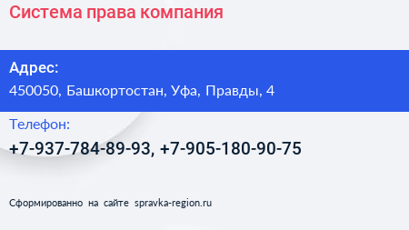 Система права, компания по адресу 450050, Башкортостан, Уфа, Правды, 4 в дальнейшем Организация, размещена в следующих категориях: