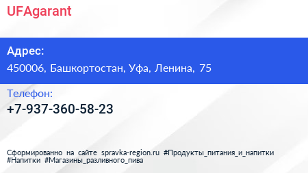 UFAgarant по адресу 450006, Башкортостан, Уфа, Ленина, 75 в дальнейшем Организация, размещена в следующих категориях: