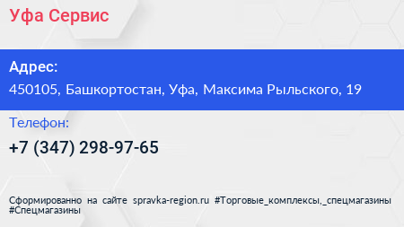Уфа Сервис по адресу 450105, Башкортостан, Уфа, Максима Рыльского, 19 в дальнейшем Организация, размещена в следующих категориях: