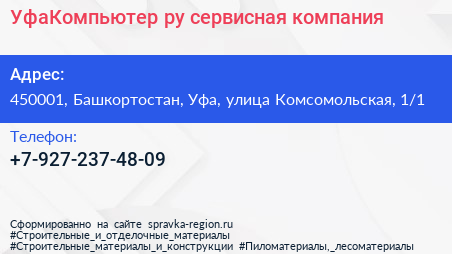 УфаКомпьютер.ру, сервисная компания по адресу 450001, Башкортостан, Уфа, улица Комсомольская, 1/1 в дальнейшем Организация, размещена в следующих категориях:
