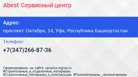 Abest – Сервисный центр по адресу проспект Октября, 14, Уфа, Республика Башкортостан в дальнейшем Организация, размещена в следующих категориях: